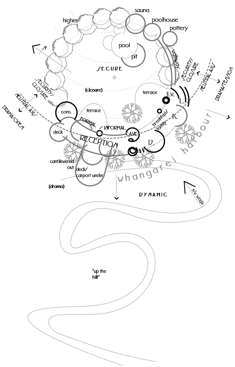 This is a site diagram based on notes I made in a lecture on the house Claude delivered in 1988: